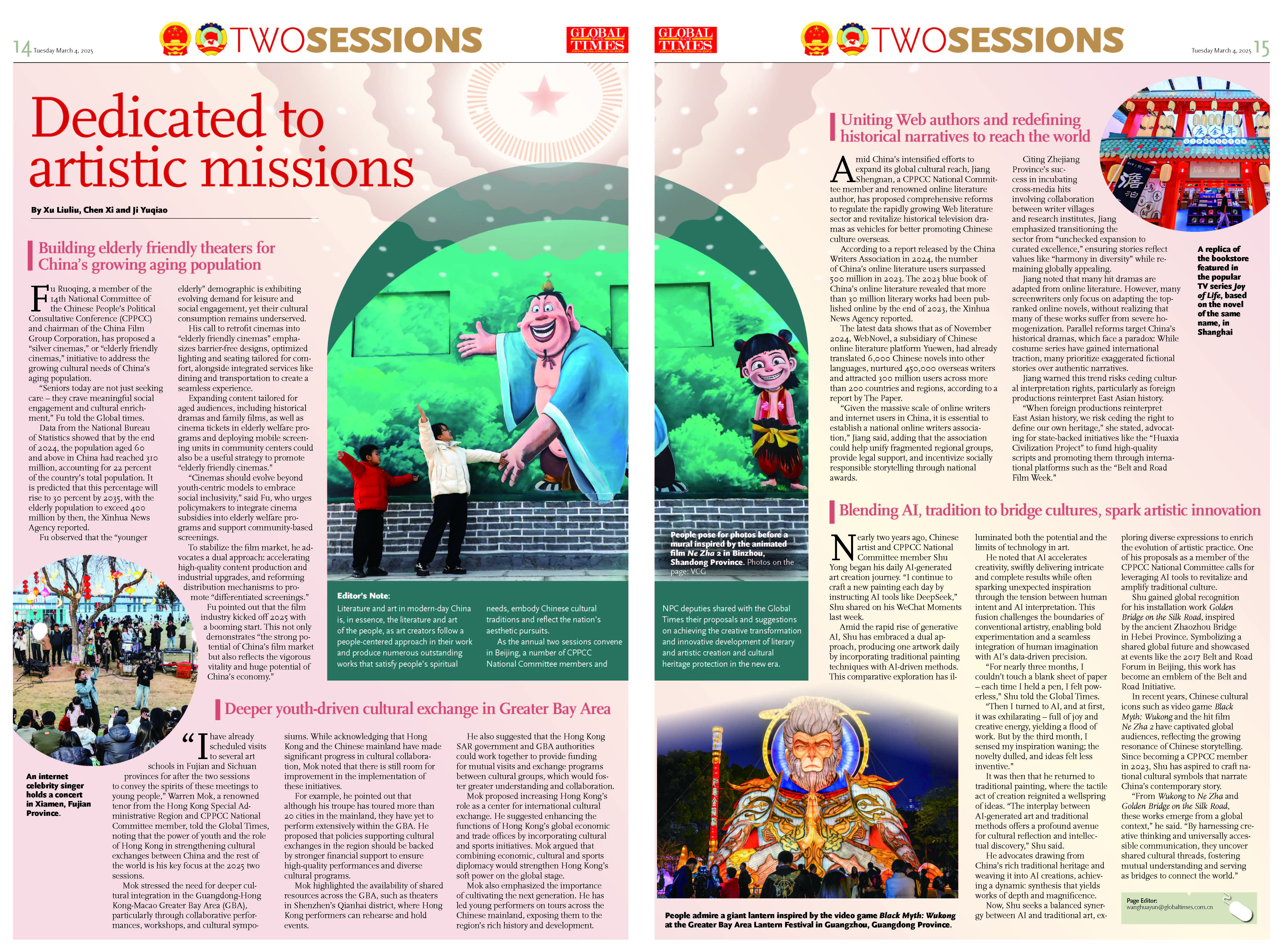 Deeper youth-driven cultural exchange in GBA"I have already scheduled visits to several art schools in Fujian and Sichuan provinces for after the two sessions to convey the spirits of these meetings to young people," Warren Mok, a renowned tenor from the Hong Kong Special Administrative Region and CPPCC member, told the Global Times, noting that the power of youth and the role of Hong Kong in strengthening cultural exchanges between China and the rest of the world is his key focus at the 2025 two sessions.