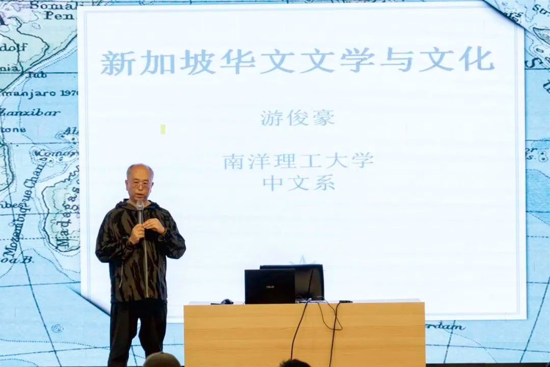 新加坡南洋理工大学游俊豪教授作为主讲嘉宾,系统讲解了新加坡华文文学的百年发展脉络,带领读者感受新加坡华文文学作品独特的魅力与历史。这位集学者与诗人于一身的文化使者,不仅担任南洋理工大学华裔馆馆长、中华语言文化中心主任,更以《流线》《象形》《记号》等诗集蜚声文坛。活动现场,洞头区文联主席林慷慨特别授予游俊豪“文艺岛民”荣誉身份,永利yl23411官网入口学子声情并茂地演绎了游教授的诗作,带领听众穿梭于跨文化的诗意空间。