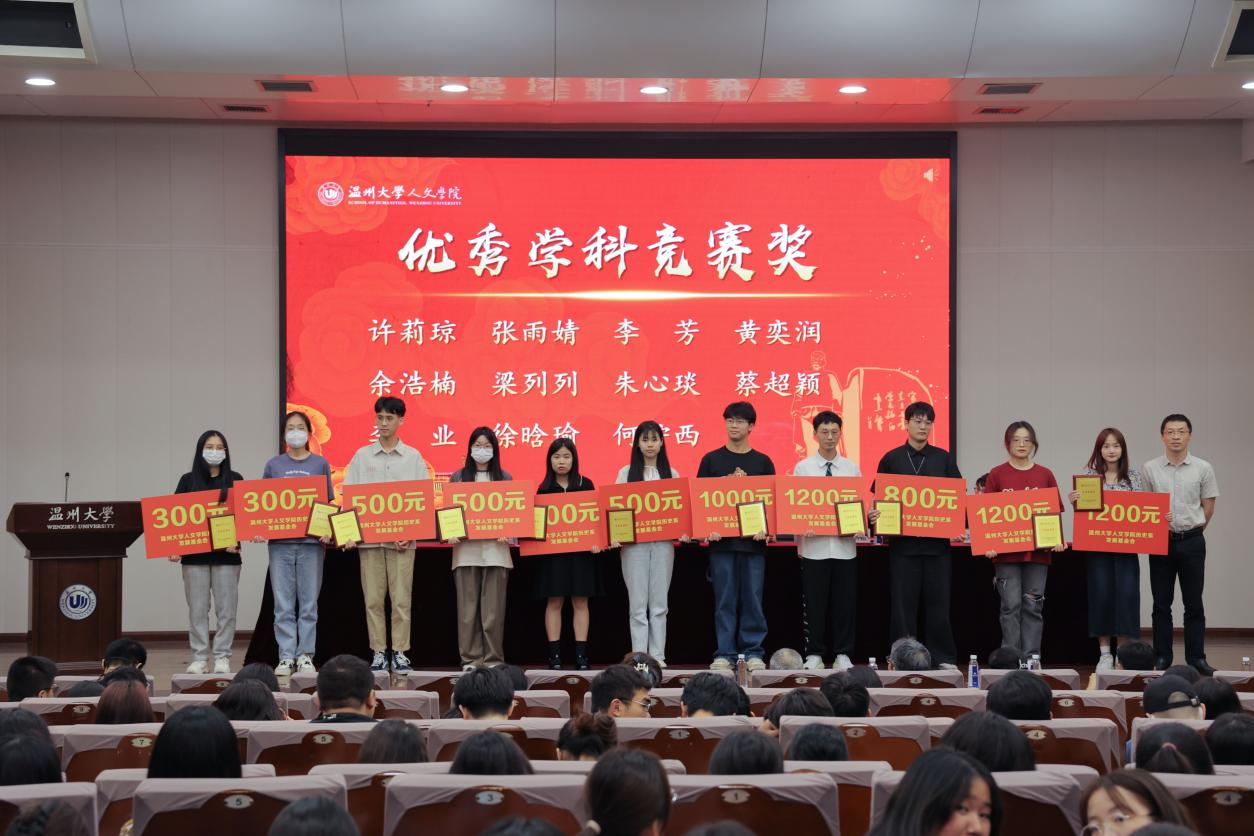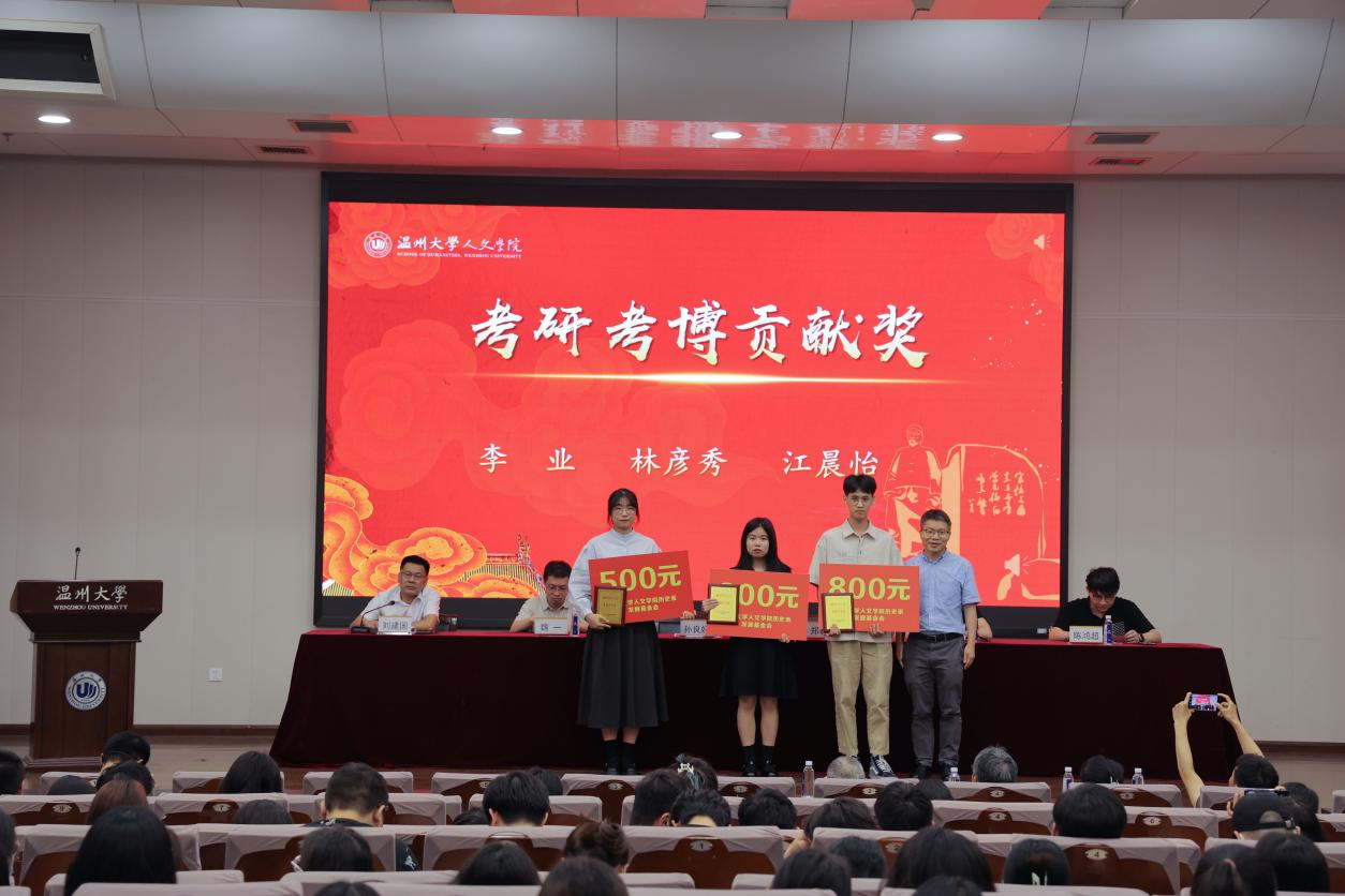 公司党委副书记魏一宣读获奖名单,奖项分为优秀毕业论文奖、优秀学术成果奖、优秀学科竞赛奖、考研考博贡献奖、教师特别贡献奖。获奖员工依次上台领奖。