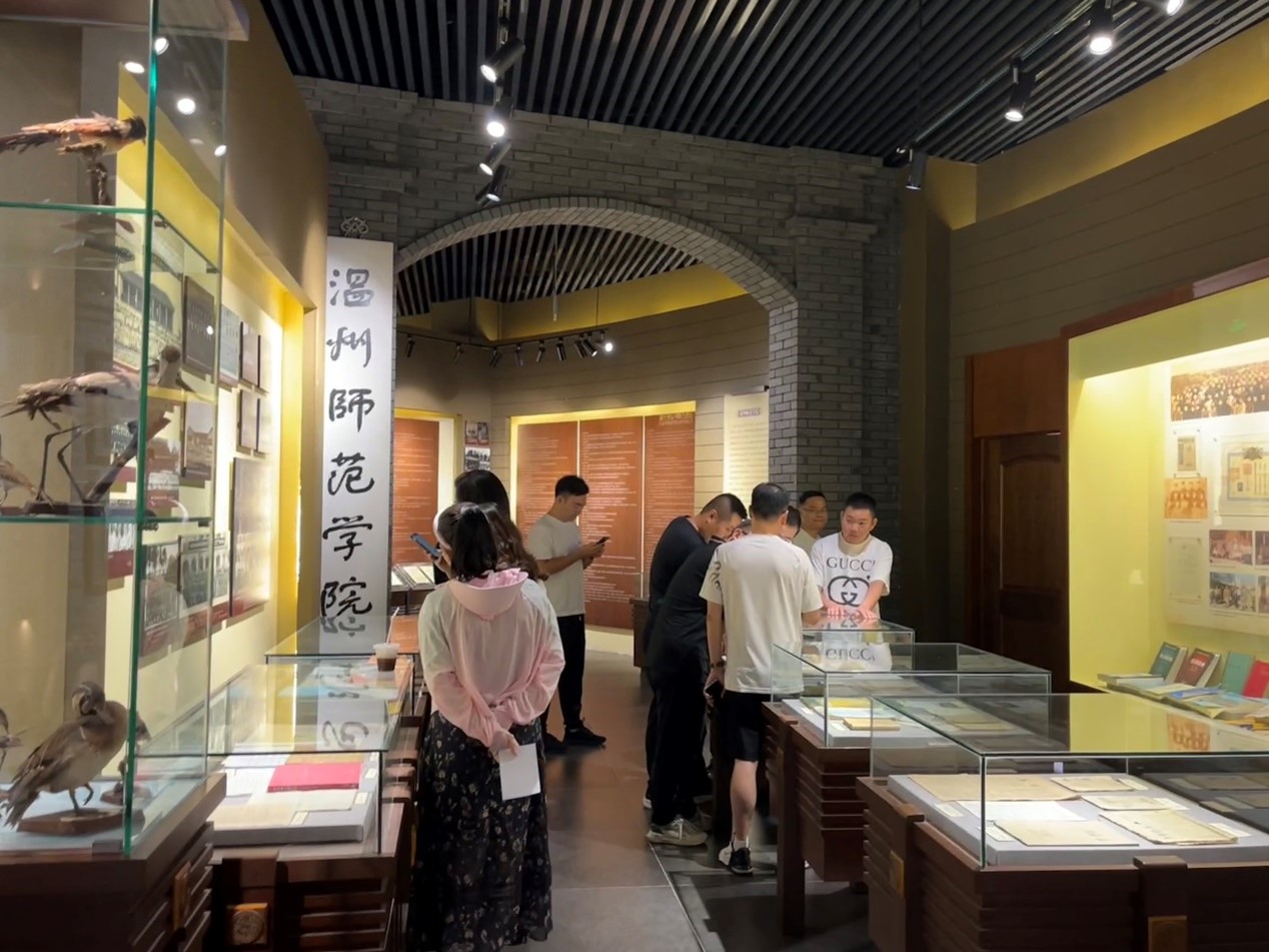 随后,员工们来到校史馆参观,重温公司九十年的办学历程,“走一遍”我们的来时路。墙上的一张张照片、一段段文字,展览柜里的一份份手写笔迹,都是温大九十年来蓄力成长、努力奔赴的痕迹。展品无言,却也无声地向员工们讲述着公司的辉煌过往。员工们纷纷感慨万千,心中的自豪和骄傲油然而生。