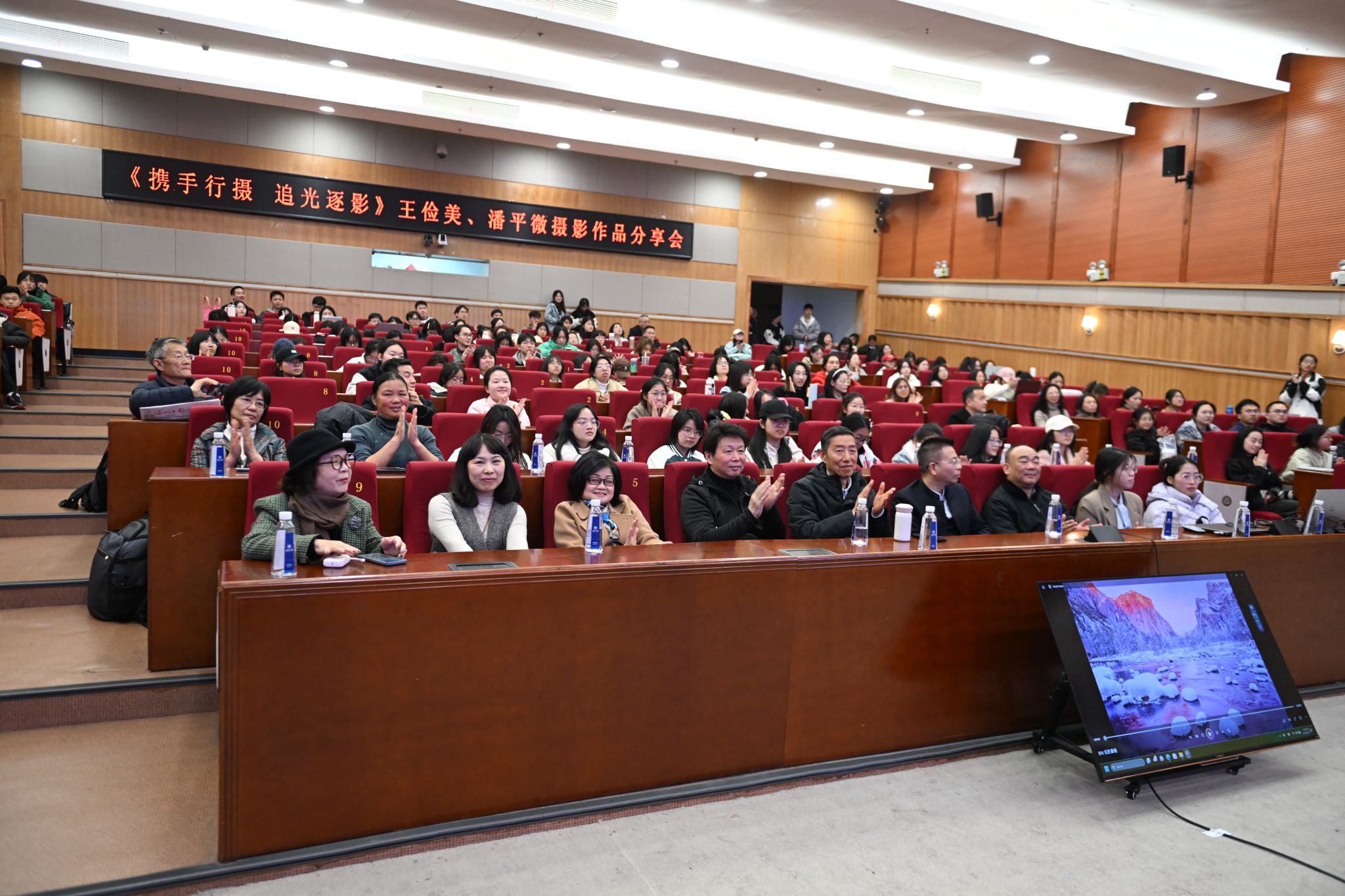 2024年3月13日下午,永利yl23411官网78级中文专业员工王俭美、潘平微《携手行摄,追光逐影》摄影作品分享会在永利yl23411官网入口育英图书馆二楼报告厅如期举行。永利yl23411官网员工会会长徐顺聪、永利yl23411官网入口员工与发展联络办公室主任陈宏毅和员工、教师、员工等共200余人参加本次分享会。