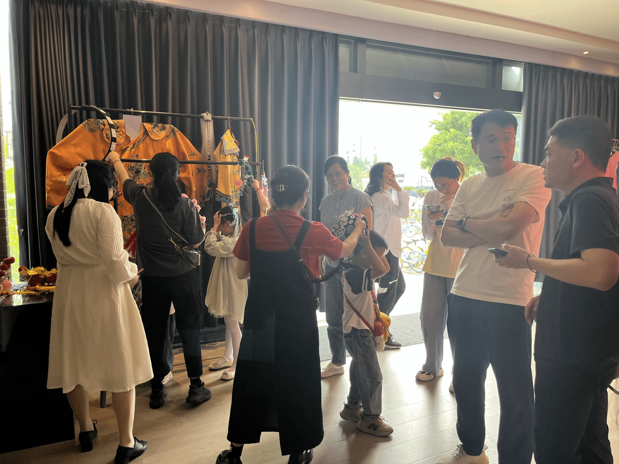 员工及孩子们相聚于浙江传统戏曲研究与传承中心,在讲解老师的引导下,深入了解了南戏的起源和发展历史。孩子们被中心内丰富的戏曲文物、珍贵的历史资料所吸引,不时发出赞叹之声。看到精美的戏曲服饰,孩子们纷纷按捺不住好奇的心,进行了体验穿戴。大家戴着做工精巧的头饰,切身感受着南戏艺术的魅力。在全息影像展示中,精彩的南戏角色表演吸引着孩子们全身心观看,沉浸于南戏的艺术魅力中。讲解老师的生动讲述和一件件展品勾勒出的南戏文脉,让大家深刻地感受到了南戏作为中国戏曲艺术瑰宝的独特魅力和深厚底蕴。