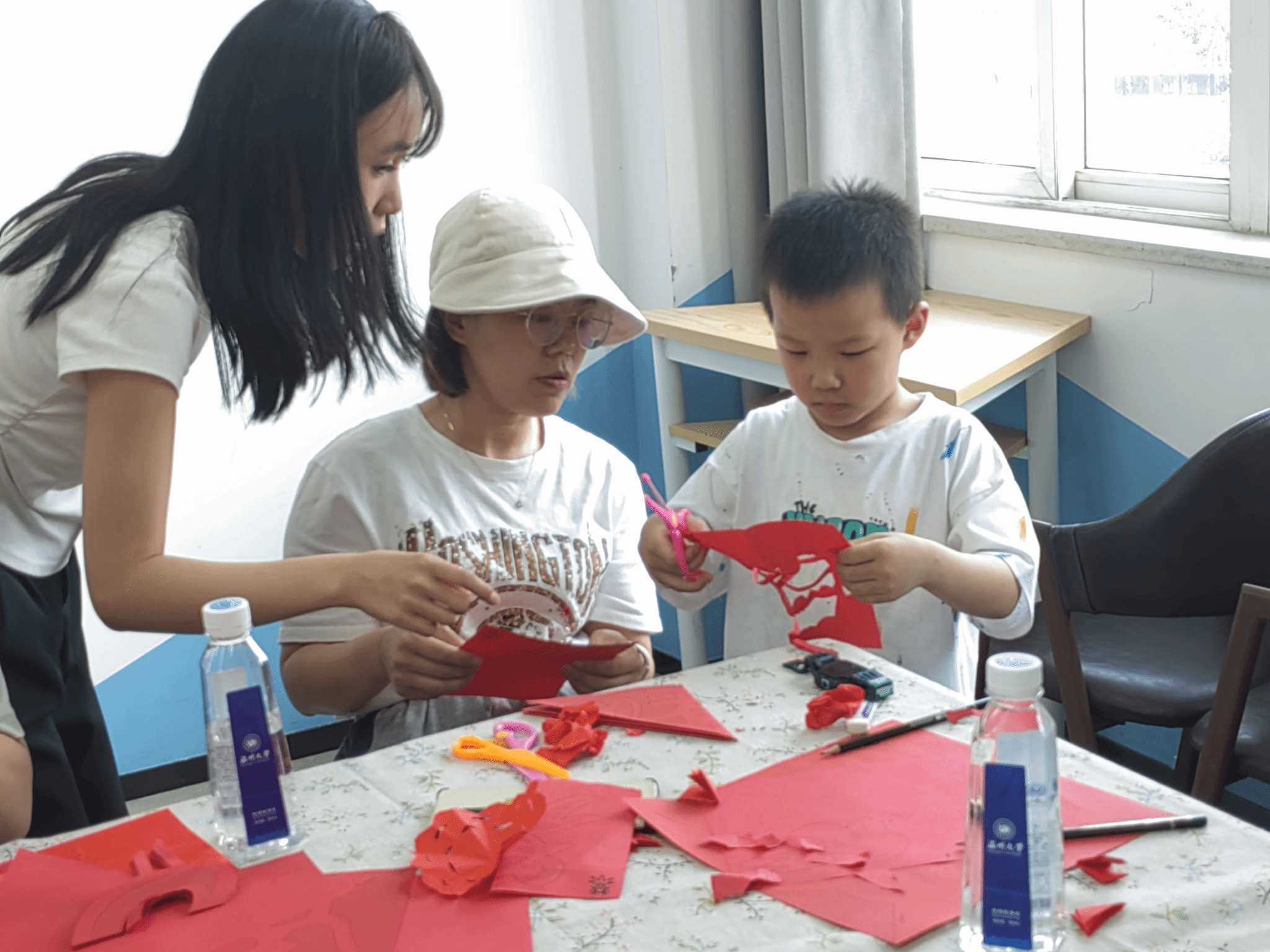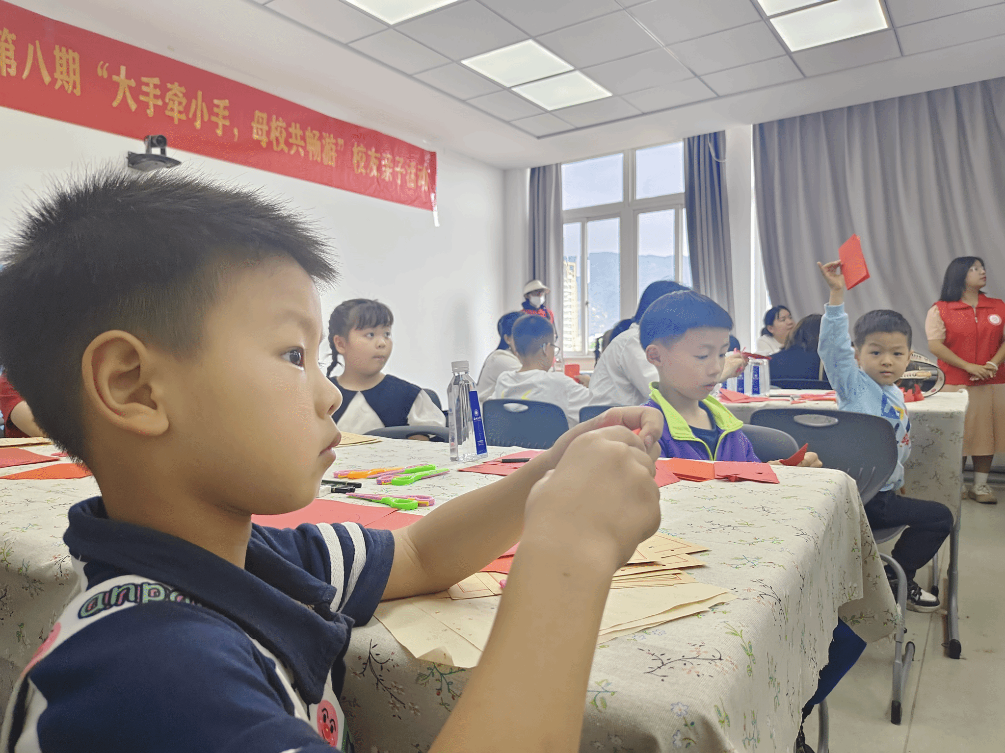 亲子活动的最后是一场别开生面剪纸文化实践课,孩子们在老师和家长的指导帮助下,纷纷拿起剪刀和红纸,开始了自己的剪纸创作。从画上纷繁复杂的图案再到剪下红纸上的痕迹,每一个步骤都凝聚着孩子们的专注与热情。他们时而低头挥笔,时而挥动剪刀,教室里充满了欢声笑语,一幅幅精巧的剪纸作品也在小手中慢慢浮现。随着快门声响起,定格下孩子们手持自己创作的剪纸作品,脸上洋溢着自豪和喜悦的笑容的这一刻,也迎来了本次员工亲子活动的圆满结束。