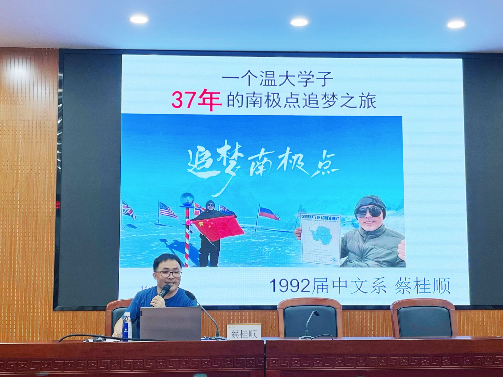 2024年6月5日下午,公司邀请1992届中文专业优秀员工蔡桂顺在人文楼203学术报告厅作“逐梦南极点”主题分享。分享会由公司党委副书记魏一主持,永利yl23411官网经理孙良好、公司党委书记江秀景、永利yl23411官网入口创意写作研究中心主任金丹霞、员工代表、师生代表参加。