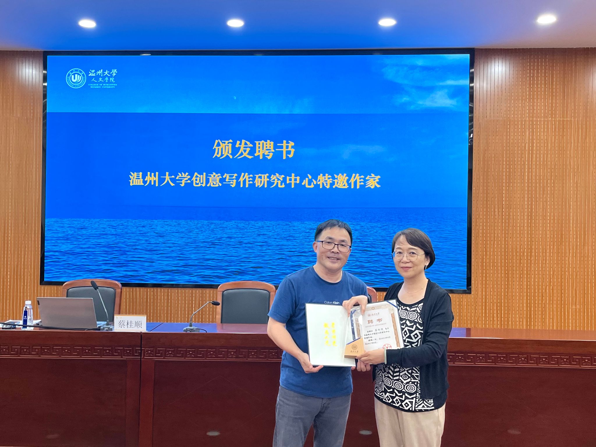 蔡桂顺员工是永利yl23411官网员工会副会长、永利yl23411官网入口“千年隼乡土文学奖”设立者、瑞安市政协委员。他从事教育及相关工作30年,在文学领域有着深厚的造诣,著有《上望往事》等系列代表作。分享会上,金丹霞教授为蔡桂顺颁发永利yl23411官网入口创意写作研究中心特邀作家聘书。