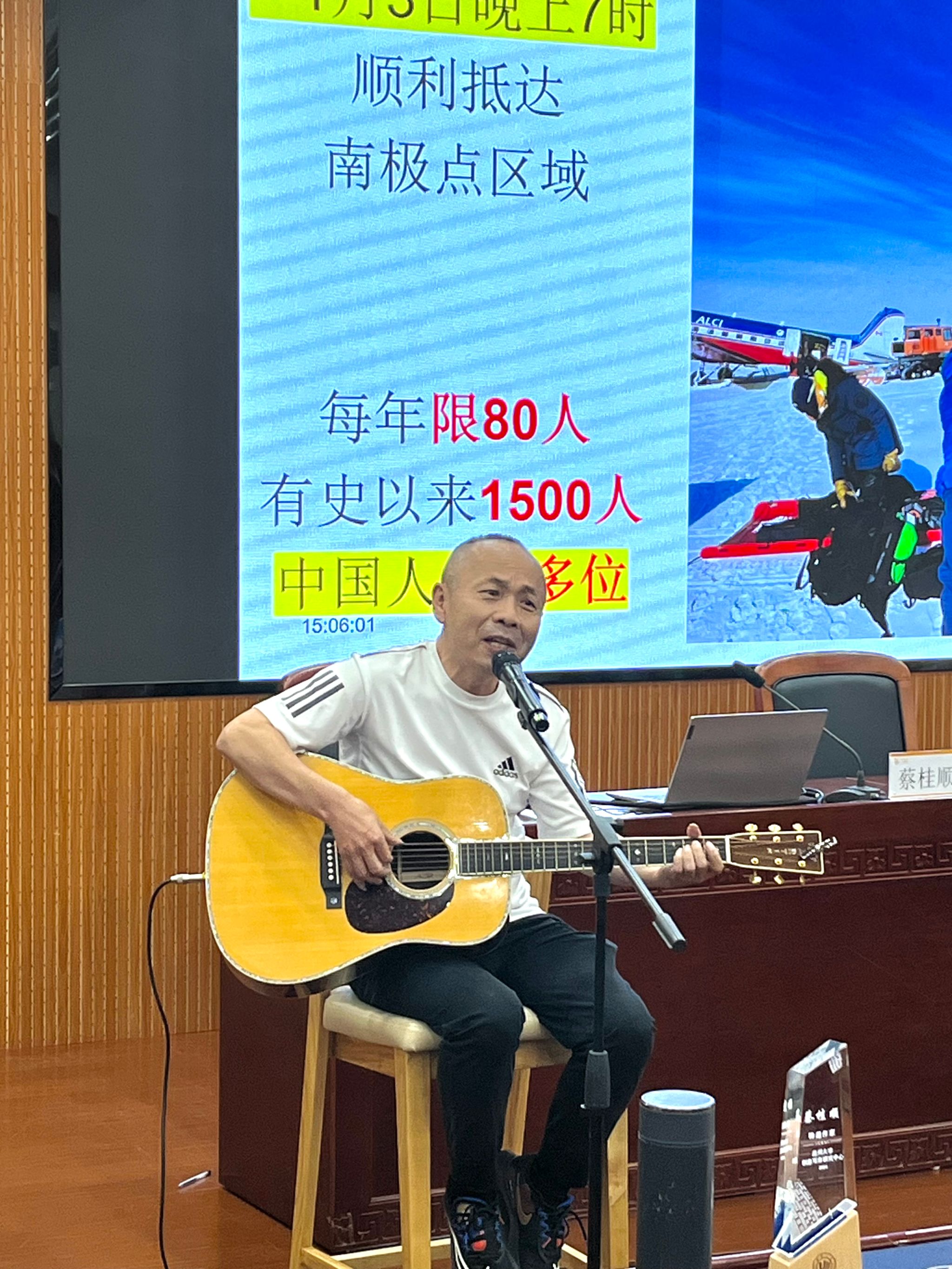 1985年,蔡桂顺因老师说“你们有机会要去南极点看看企鹅”而在心中种下一颗探险南极的种子。为了实现这个梦想,蔡老师用了37年。自2019年起,蔡老师就为追向南极点的探险之旅做准备,锻炼身体以应对极端天气、学习英语以便更好地与领队和同行者交流、购置各种装备、排队等候探险之旅的名额等。2023年12月23日,蔡老师终于如愿踏上前往南极点的旅程,“我的天性里有一种爱冒险的精神,要去追梦,去南极点就是一种体现,我的梦想就是在南极点过一个晚上。”