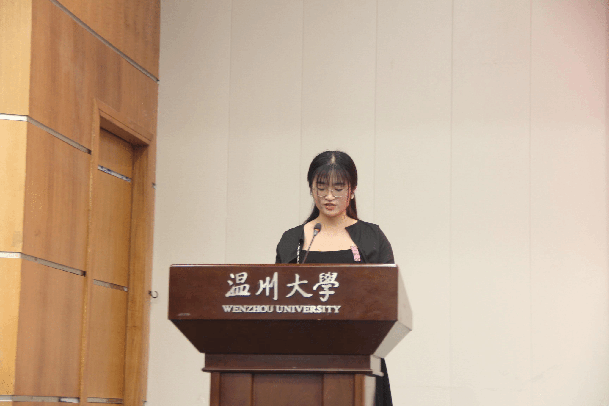 在经验分享环节中,徐俊杰、蒋翠萍、杨洪娜、许莉琼四位同学就学习经验、论文撰写、学科竞赛、实习经历及考研生活等方面进行了分享,并对自己在学习道路上遇见的良师益友表达了真挚的感谢。