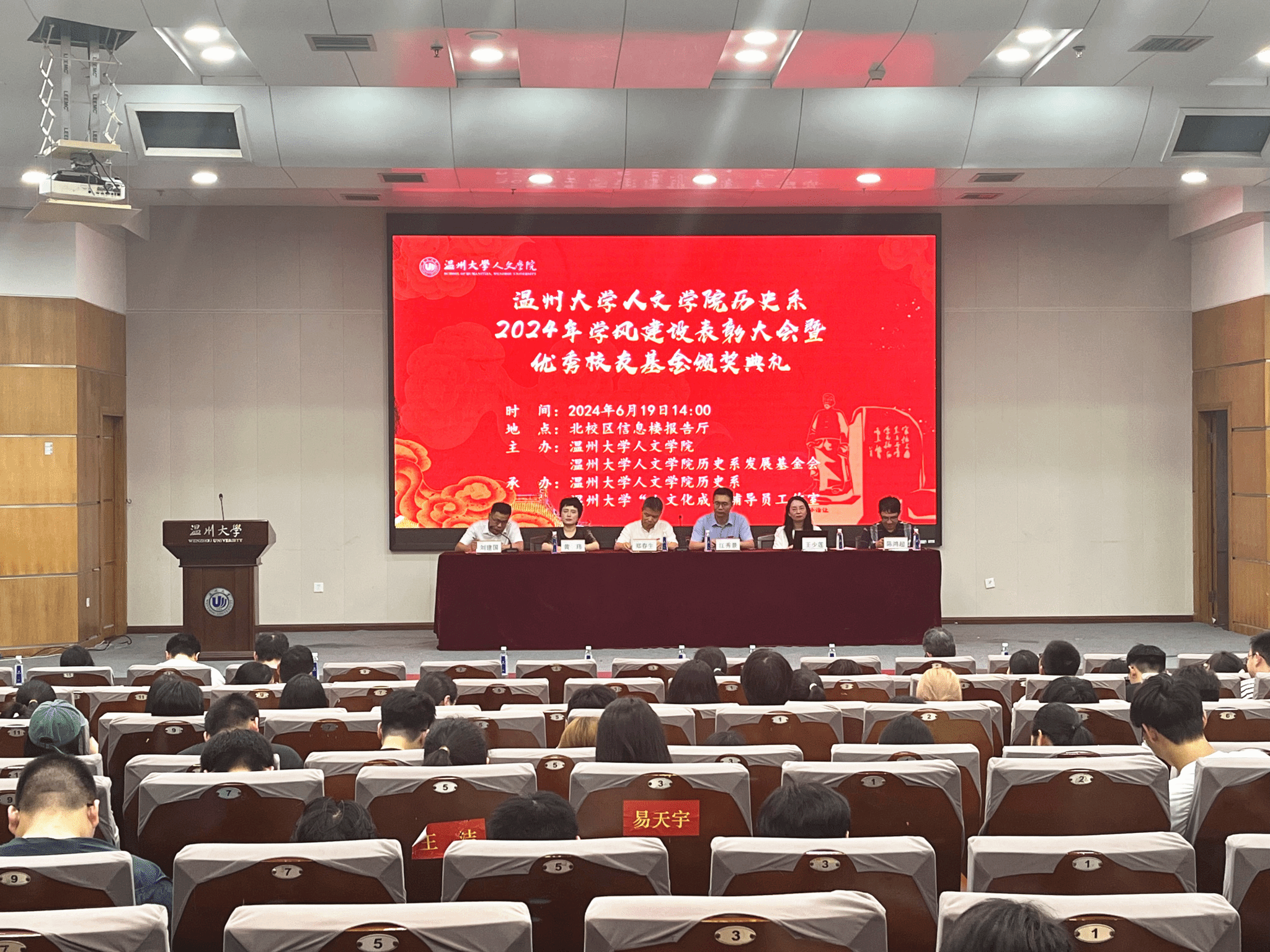 2024年6月19日下午14:00,公司历史系2024年学风建设表彰大会暨优秀员工基金颁奖典礼于北校信息楼报告厅隆重举行。大会由公司历史系发展基金会会长刘建国主持。永利yl23411官网党委书记江秀景、副经理郑春生、院党委副书记黄玮、历史系主任陈鸿超、97级历史本科员工王少莲、历史系教师代表以及历史系全体员工出席了本次大会。