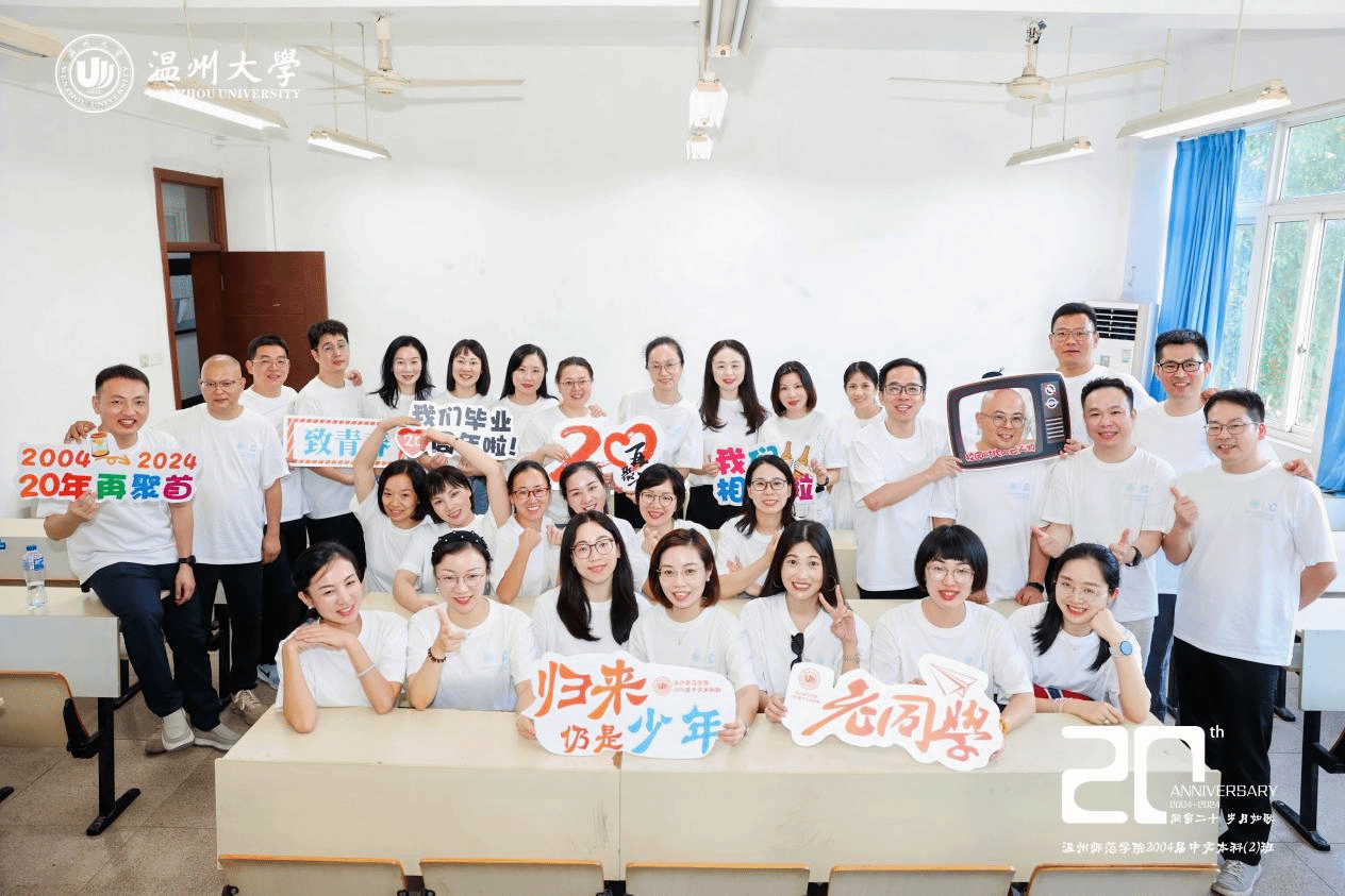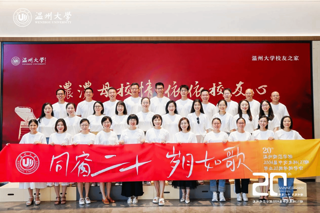 晴空万里,骄阳如炬。昔日同窗重返校园,回首当年青葱岁月,共续浓浓同学情谊。8月3日,温州师范公司2004届中文本科(2)班员工返校举办20周年同学会。