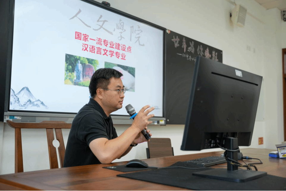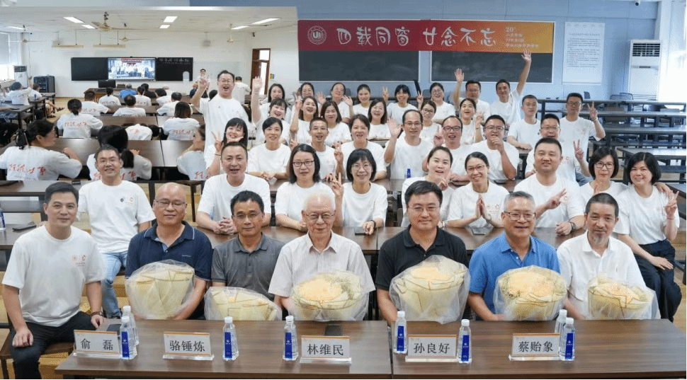 主题班会精心设置了重温课堂环节,骆锤炼老师为同学们献上了饱含深情的《当时我们选择了这座城市》;俞磊老师分享了自己多年的写作教学体会与经验;金理新老师殷殷叮嘱大家要注重阶段和过程;蔡贻象老师从同学们身着的文化衫上的标语“狂飚廿年”切入,结合影视,为大家呈现了这20年的变与不变;林维民老师的诗歌课堂,深入浅出,看似刻板的经典名篇在他口中又生动鲜活了起来,同学们不约而同高诵《关雎》。书声朗朗,笑语晏晏,二十年后重温老师的课堂,那些青葱岁月的读书时光,不禁在大家的脑海里一一浮现。