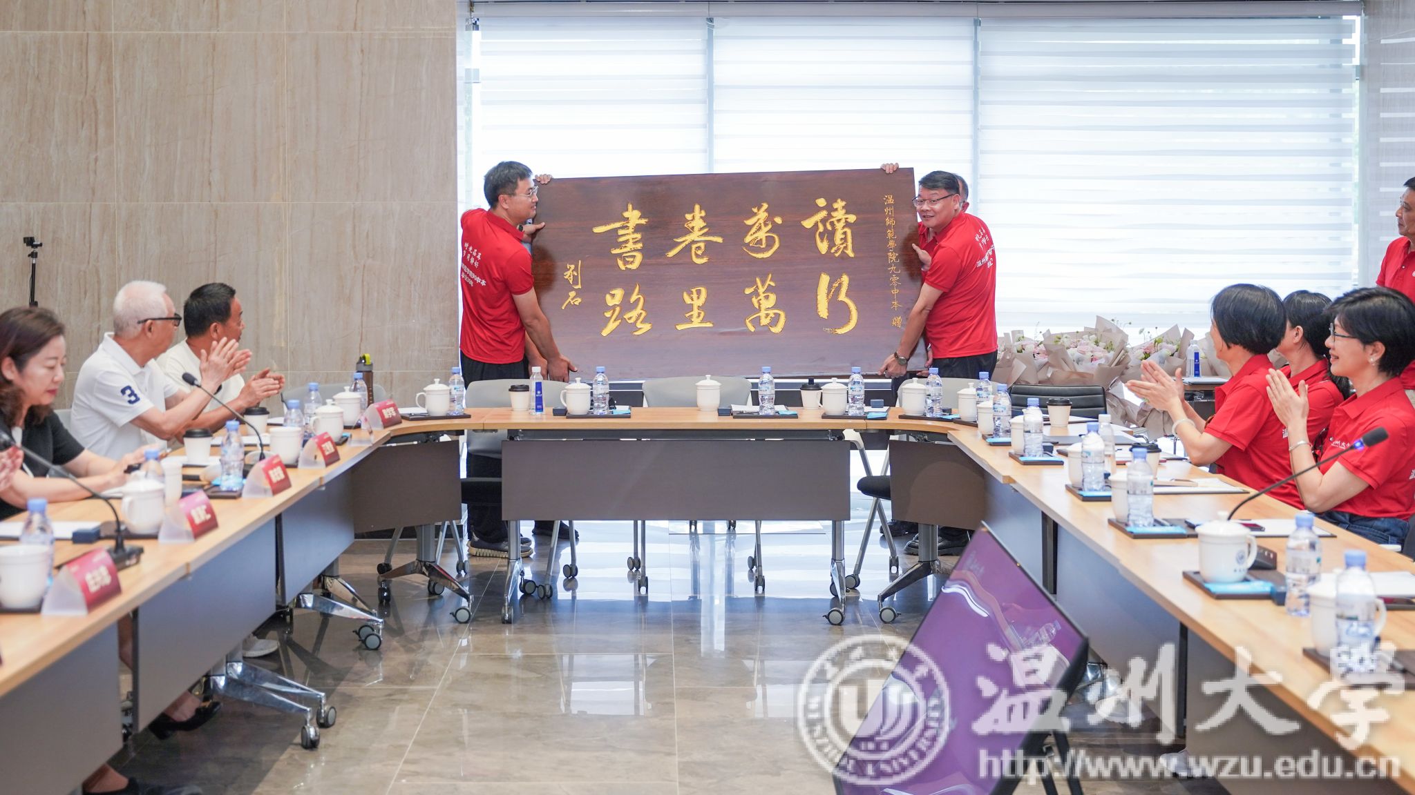 90中本向母校赠送礼物,牌匾上写有“读万卷书,行万里路”,寄托着90中本员工们对永利yl23411官网学子的殷切期望。