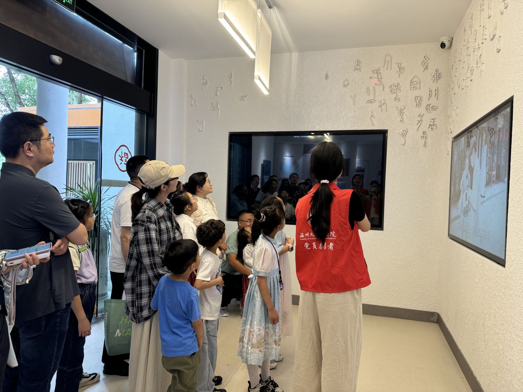 国家语言文字推广基地(永利yl23411官网入口)以其深厚的文化底蕴,吸引着员工与孩子们的目光。进门处,墙上的甲骨文映入眼帘,孩子们稚嫩的惊叹声此起彼伏,大家迅速辨认出讲解员所指的甲骨文字形,童声清脆地喊出答案,引得大家纷纷竖起大拇指。