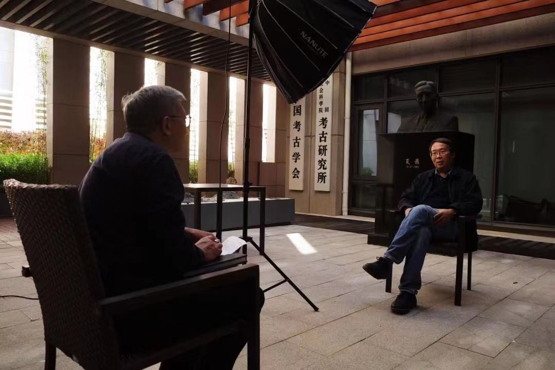 △ 纪录片《考古巨擘夏鼐》陈振洲(左)采访中国社会科公司考古研究所陈星灿(右)所长